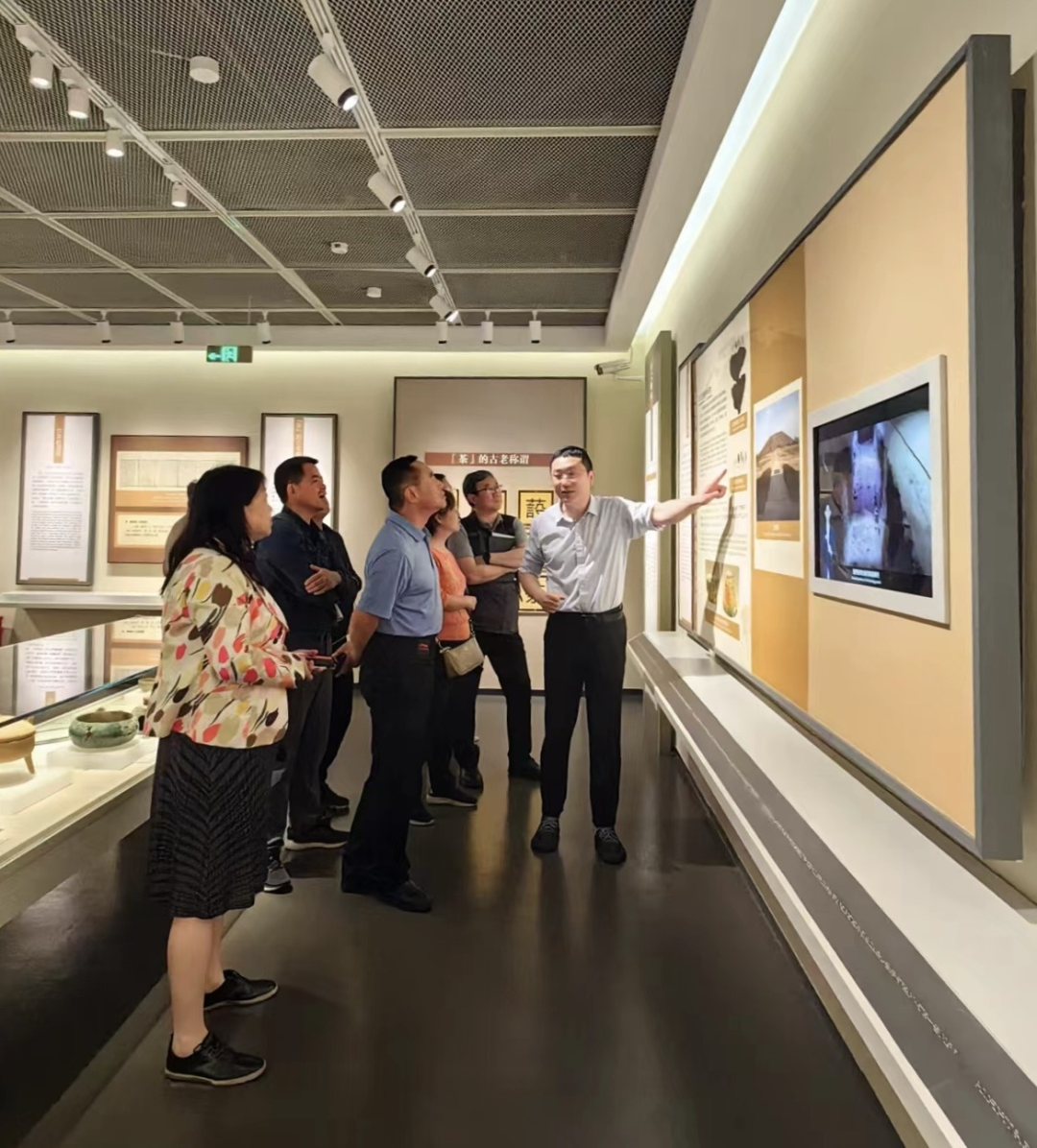 5月13日下午,课题组到中国茶叶博物馆考察。课题组在中国茶叶博物馆副馆长林晨的陪同下,考察了中国茶业博物馆茶园、中华茶文化展和西湖龙井茶专题展,了解茶的种植、加工方法、品种、人文历史等茶档案,以及西湖龙井的起源、发展历史和人文佳话,并进行了深入的交流。