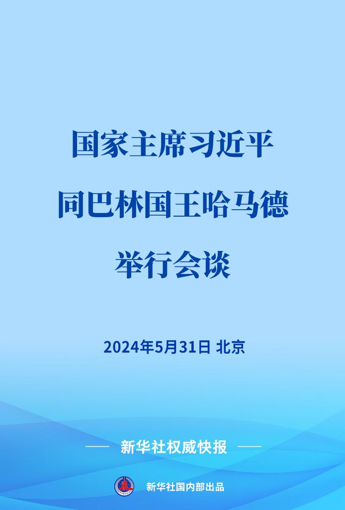 5月31日下午,国家主席习近平在北京人民大会堂同来华进行国事访问的巴林国王哈马德举行会谈。