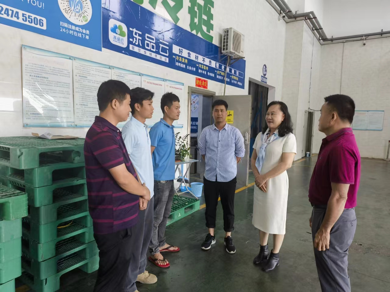 邢孔梅(右二)在园区与员工交流