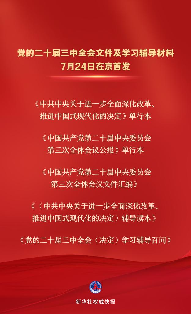 党的二十届三中全会文件及学习辅导材料7月24日在京首发