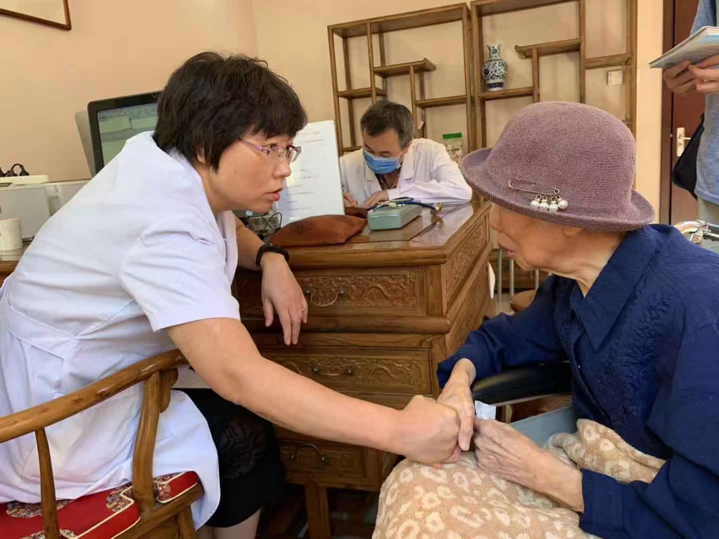 徐凤芹(左)正在为患者诊治。(图片由受访(5562331)-20241023103650