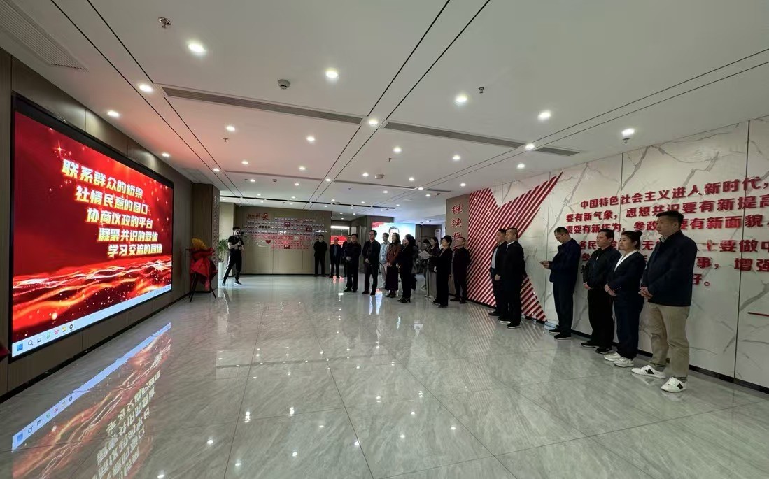 采访团来到了位于九江市八里湖畔徽商中心的九江市政协民建、特邀界别委员“站家”,这个“站家”设有展示厅、会议室、协商议事室、委员风采栏、交流区等,硬件设施完善,环境安静清新。日常,入驻的政协委员和民建界别的群众就在这里开展学习、交流、协商议事,已经成了温暖的委员之家、民建会员之家。