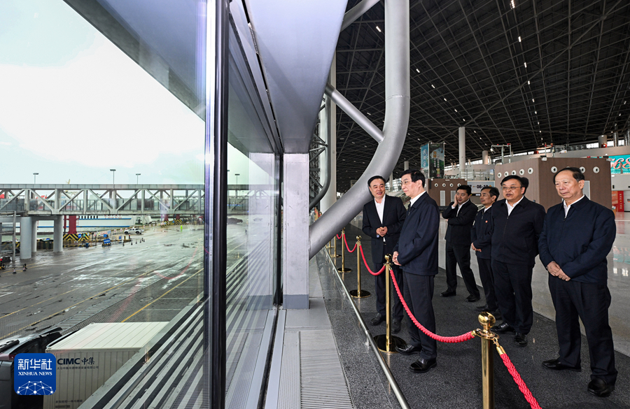 11月20日至22日,中共中央政治局常委、全国政协主席王沪宁在海南调研。这是11月20日,王沪宁在海南自由贸易港新海港综合客运枢纽了解封关运作口岸建设及管理运行情况。新华社记者 饶爱民 摄
