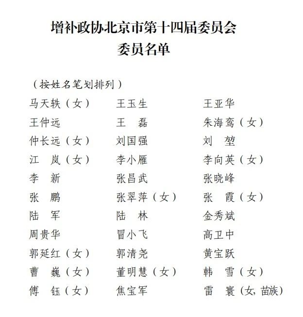 十四届北京市政协增补马天轶等33人为政协委员