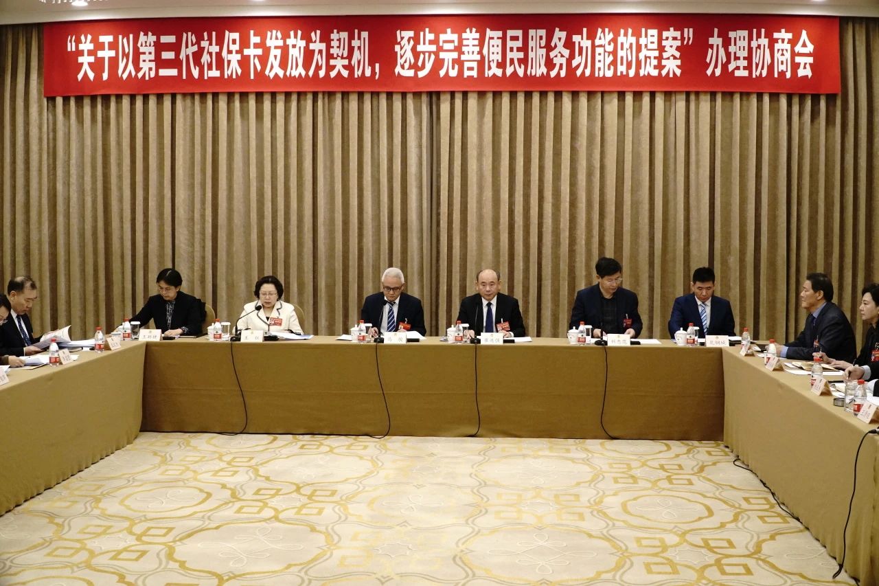 在提案协商会现场,委员们收到了北京市人力资源和社会保障局制作的第三代社??ㄎ蚀鹦植?。北京市人社局党组书记、局长王清旺表示,换发三代社??ㄉ婕叭胁伪H嗽?,各类群体特点和需求各不相同。北京市人社局在线下开设3000多个服务窗口,除了宣传手册,还推出了政策宣讲系列短视频。对于退休人员,可由社区工作人员上门开展帮办服务,老年人足不出户就能办理换发。同时,线上专门开通申领渠道,参保人只需“动动手指”即可完成申领。