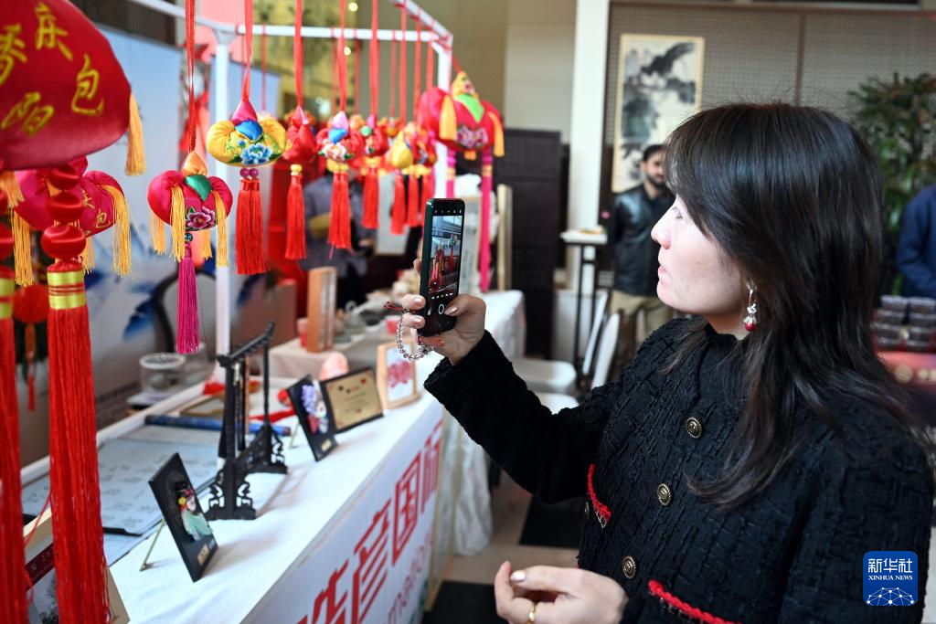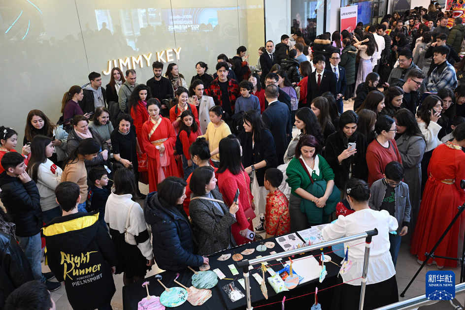 1月25日,在阿塞拜疆首都巴库,人们参加春节文化体验活动。新华社发(托菲克·巴巴耶夫摄)