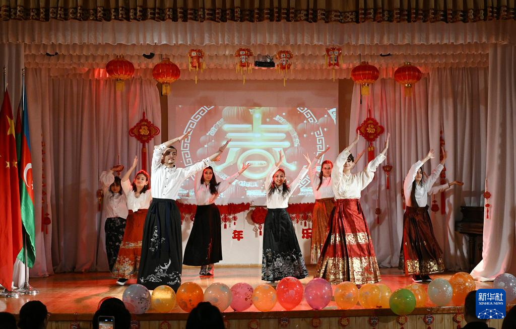 1月24日,在阿塞拜疆首都巴库,大学生在中国驻阿塞拜疆大使馆与巴库两所孔子学院联合举办“中国年·在一起”中阿青年联欢会上表演舞蹈。新华社发(托菲克·巴巴耶夫摄)