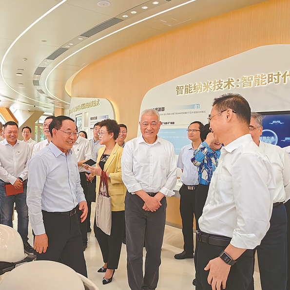 ▲ 赵宇亮(前排左一)参加全国政协组织的科技创新驱动发展调研考察活动,就促进新质生产力发展与大家进行深入交流。