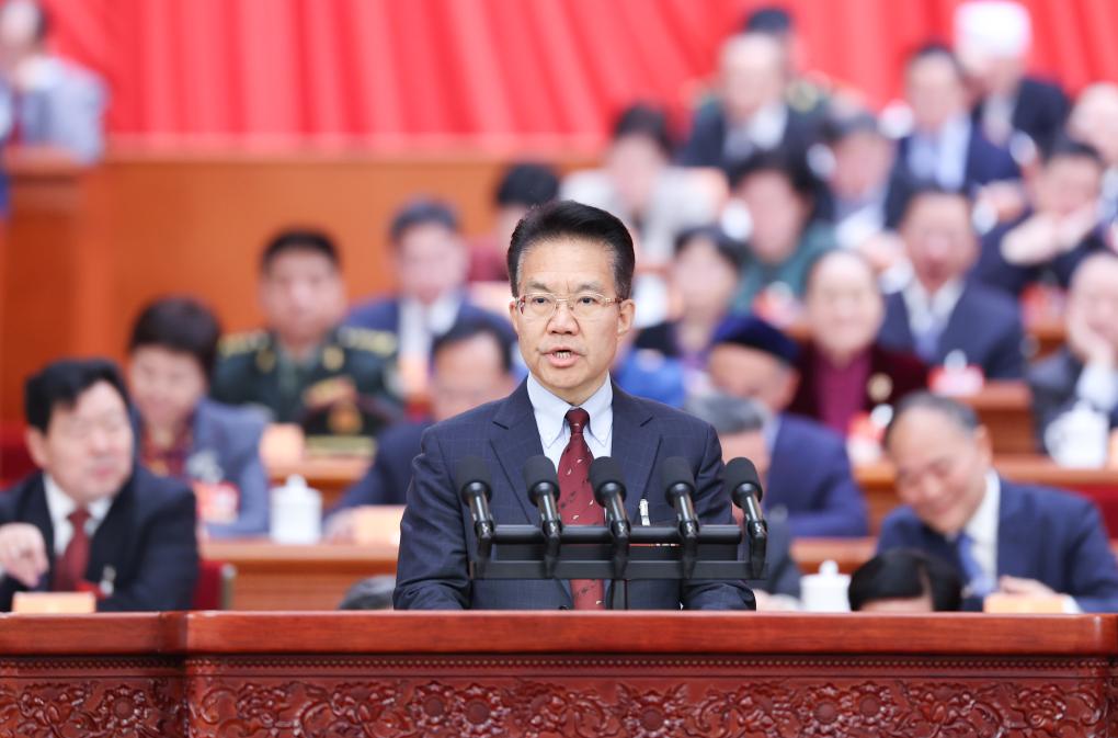 3月7日,全国政协十四届三次会议在北京人民大会堂举行第二次全体会议。这是张春生委员作题为《积极发展银发经济 全力增进老年人福祉》的发言。 新华社记者 丁林 摄