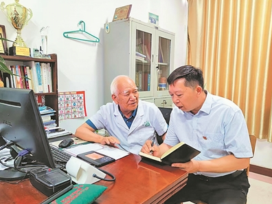 朱占波(右)围绕“中医药振兴发展”进行调研。(图片由受访者提供)