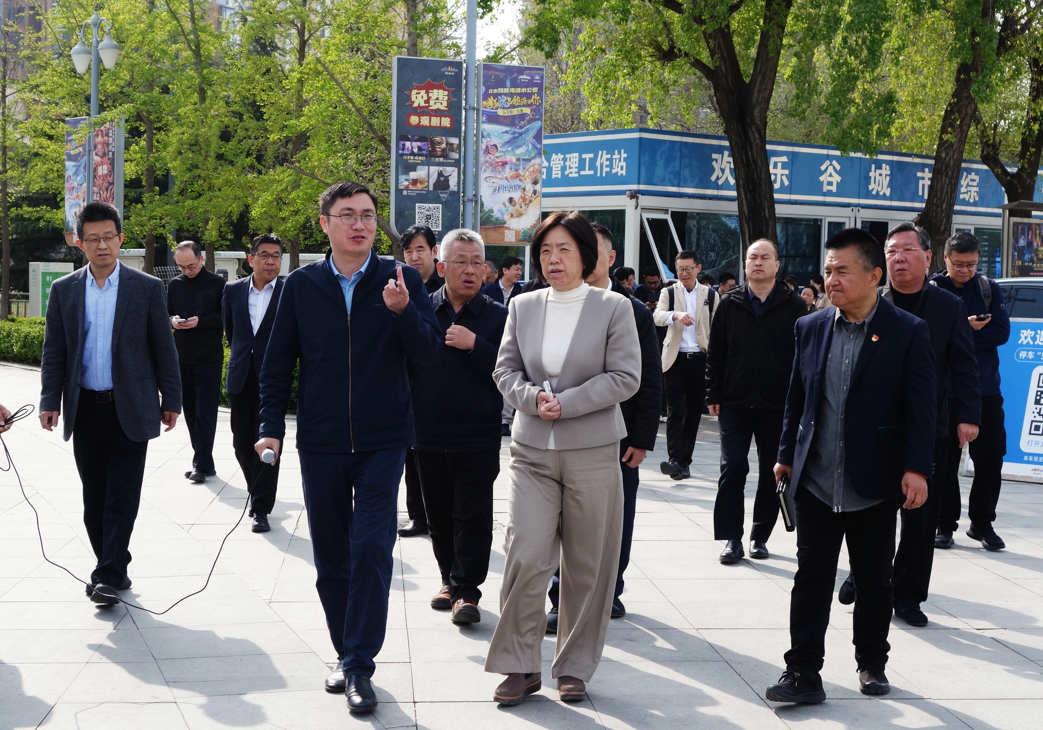 活动中,大家实地调研北京欢乐谷公园停车场建设情况,了解周边交通秩序现状。