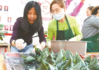 随后,在社区居民的帮助下,港澳台侨同胞一起学习包粽子。来自香港的刘晓君很快掌握了包粽子的方法:“我感受到了节日的温情和幸福?!?/p>