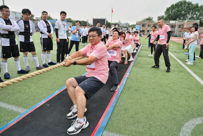 此次运动会精心设计了3个竞技类集体项目和28个趣味类个人项目,既有速度与激情的碰撞,也有协作与智慧的较量。4×100米混合接力赛中,青年企业家用速度诠释奋斗精神;拔河比赛现场,10人混合战队紧握长绳,呐喊声震耳欲聋;沙包掷准、十字象限跳等项目则让不同年龄段的企业家同台竞技,展现出民营经济人士的蓬勃朝气。17支街道商会代表队中还融入了新就业群体的身影,快递员和外卖骑手的参与,让新兴力量深度融入区域发展共同体,为赛场增添了别样活力。