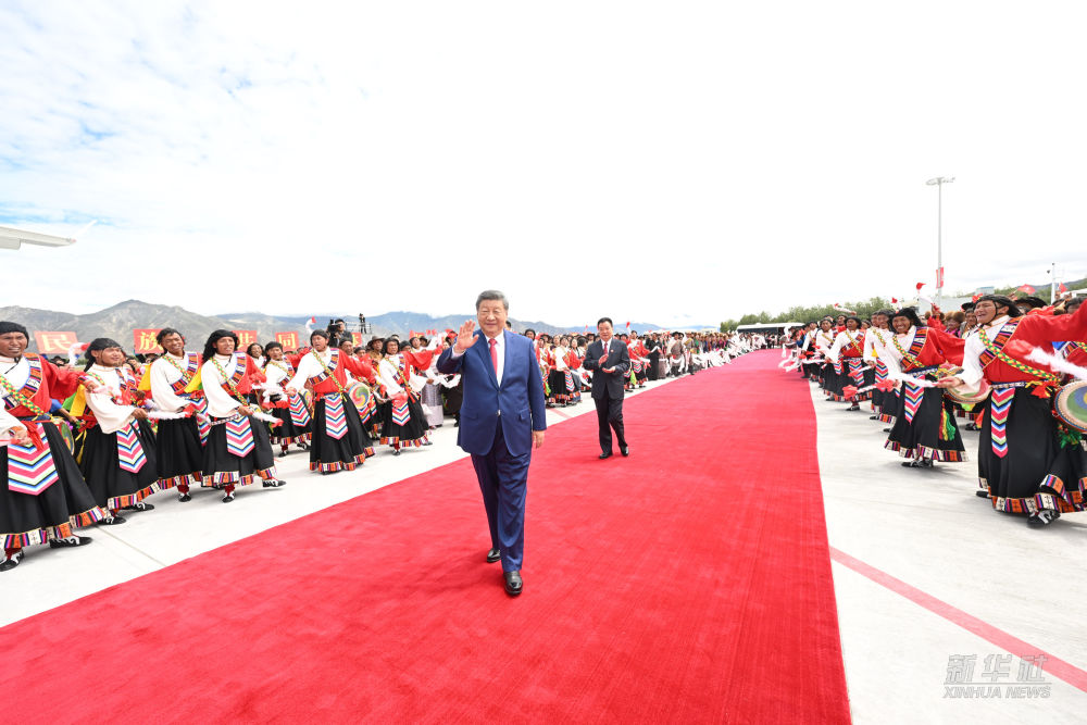 21日中午,习近平总书记在拉萨出席西藏自治区成立60周年庆祝活动后,乘专机返回北京。在拉萨市区和机场,西藏各族群众热情欢送总书记。