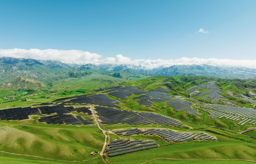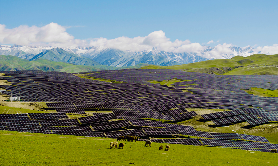 中国绿发新疆尼勒克400万千瓦风电光伏项目,是我国体量最大的风光电一体化项目,项目通过牧光互补创新模式,实现土地立体化利用。
