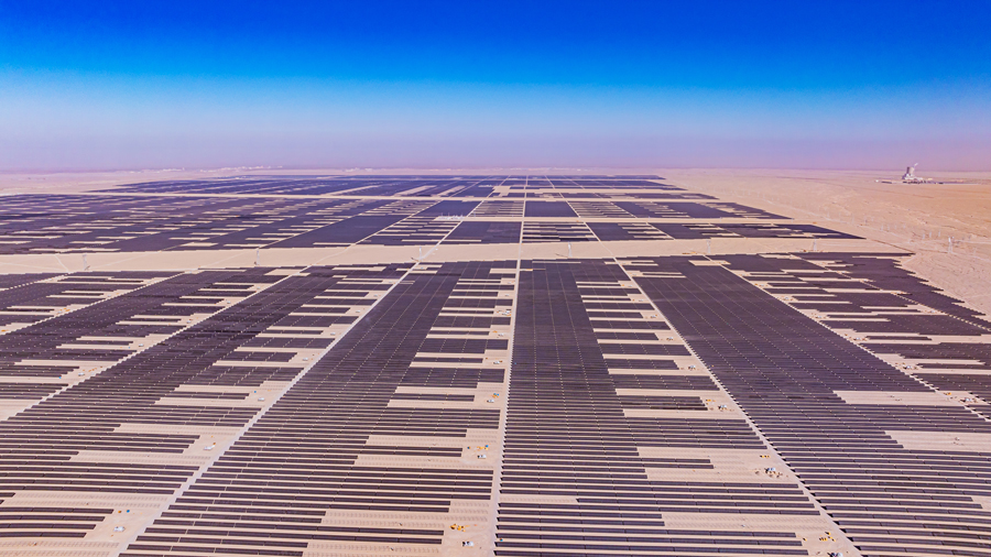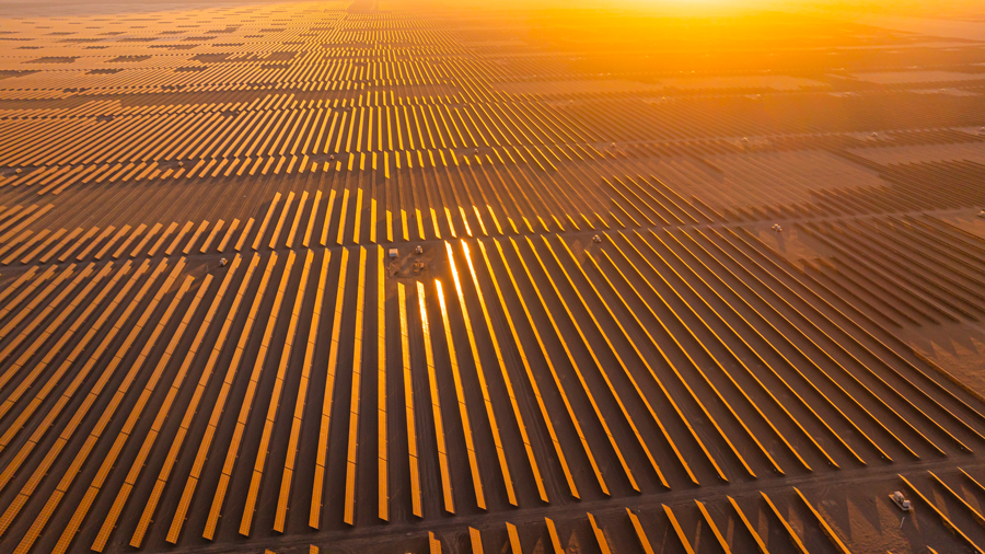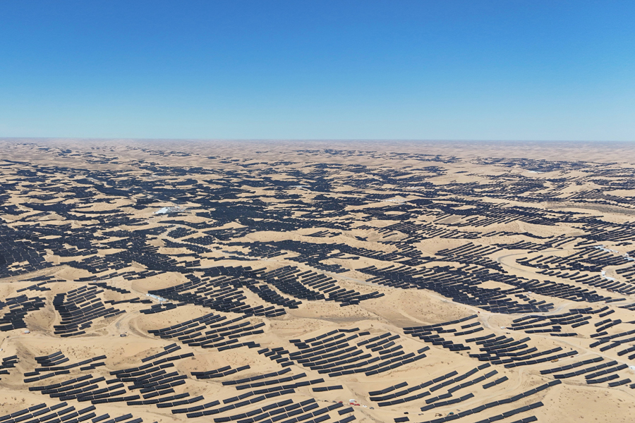 2024年,我国单体容量最大的“沙戈荒”光伏项目并网发电,中国绿发新疆若羌400万千瓦光伏项目的光伏板既能发电,又可作风沙屏障。