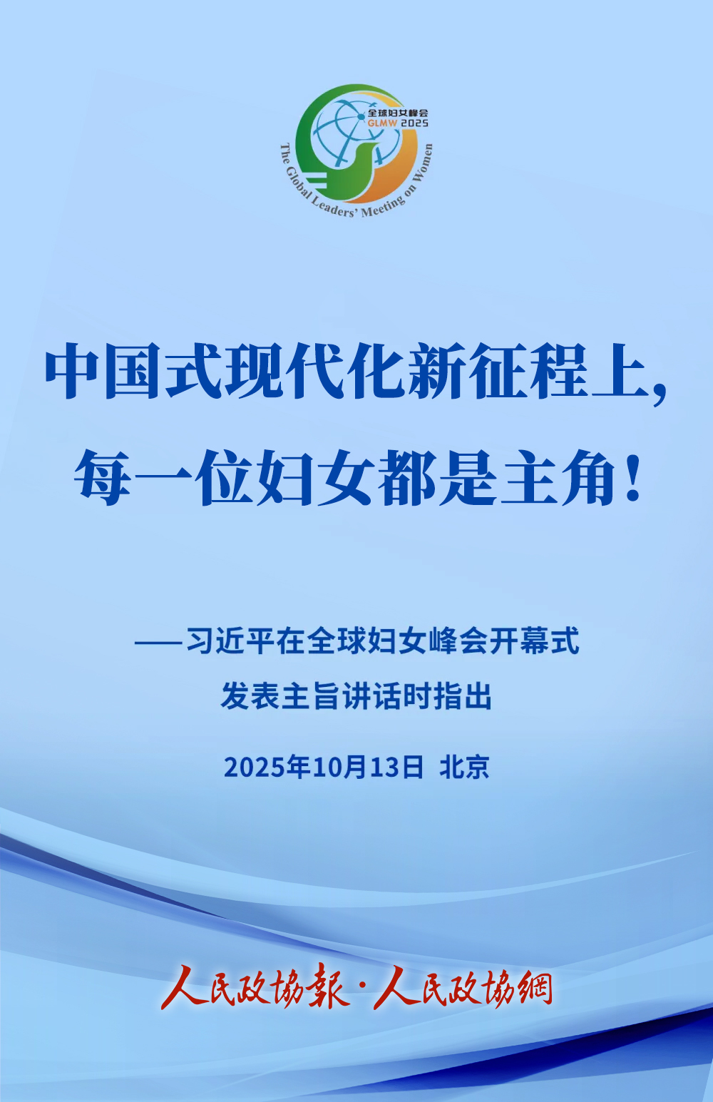 10月13日上午,国家主席习近平在北京出席全球妇女峰会开幕式并发表主旨讲话。