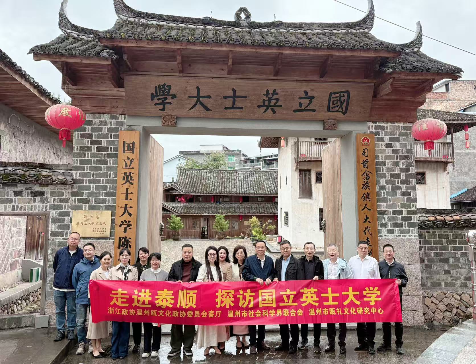 10月28日,浙江省政协温州瓯文化政协委员会客厅、温州市社科联、温州市瓯礼文化研究中心一行人赴泰顺司前畲族镇开展“走进泰顺 探访国立英士大学”专题调研活动,通过实地参观、主题汇报与交流研讨,共话国立英士大学(东南联大)历史价值与当代传承。