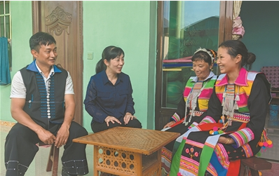 2024年10月,孙姗姗(左二)深入盈江县弄璋镇古里卡村群众中宣传民族宗教政策。(图片由受访者提供)