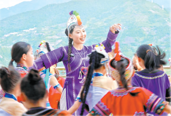 杨钰尼描述着记忆中那些生机勃勃的场景:梯田间,小男孩们光着膀子捉泥鳅、打泥巴仗;春耕时节,各民族长辈互帮互助,犁田、灌水、插秧;到了庆祝丰收、祈福纳祥的传统节日“十月年”,便是盛大的长街宴与彻夜的“乐作舞”……“我们那里生活的民族有哈尼族、彝族、傣族、瑶族、汉族,大家一起分享每家每户的美食,围着火塘唱歌跳舞、喝烤茶、吃烤豆腐……”杨钰尼说,这些鲜活的记忆,成了她取之不竭的力量源泉,也让她深刻理解了“和”的真谛—既是人与自然的共生,更是多元文化的共融。