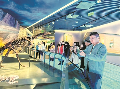 采访团成员参观云阳恐龙化石遗址馆。