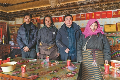 2025年12月21日,连玉明(右二)走进海拔5300米的长江源头牧民家中调研,并与牧民一家合影。