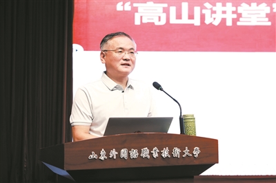 拜文汇在山东外国语职业技术大学“高山讲堂”演讲。