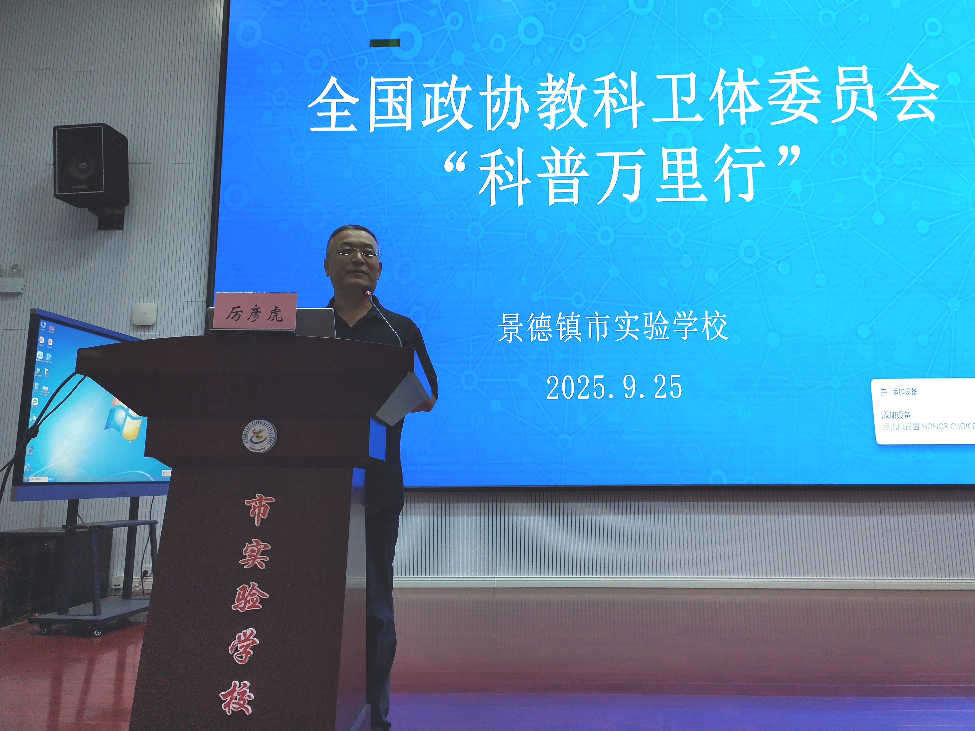 2025年9月25日,厉彦虎在江西景德镇市实验学校给师生们开展关于脊柱健康的讲座。