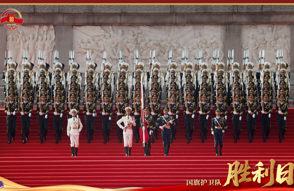 纪念抗战胜利80周年丨国旗护卫队走向旗杆基座