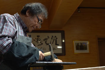 “叮叮?!薄暗钡钡薄薄徽倒碌葡?,郭海博戴着眼镜、低垂着头,一锤一錾,在一块铁皮上精雕细琢,柔和的灯光将他的头发映照得花白,锤子与铁板碰撞的声音穿透夜空。这一幕,是中国工艺美术大师、“郭氏铁板浮雕”传承的日常,他用一锤一錾雕刻出了“起伏”的人生,也雕刻出了女儿郭墨涵的成长刻度,两代人的接续传承,让铁板浮雕技艺一路生花。